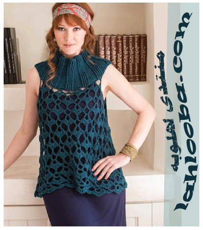 توب كروشيه بسيط بكوله عريضه وغرزة هندسية مفرغة غاية فى الجمال
